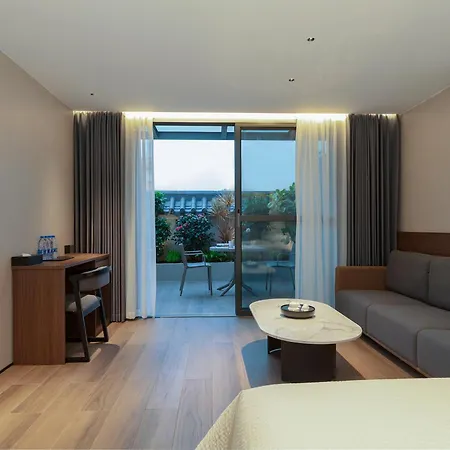 Die 50 Zimmer im Tongyuan International Hotel verfügen über einen Patio. Manche Zimmer bieten einen Ausblick auf die Terrasse.